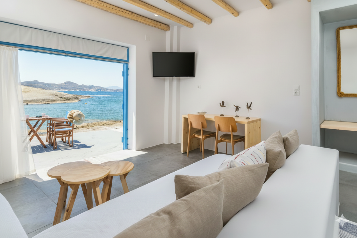 Το Beach Suite Syrma είναι ένα πλήρως ανακαινισμένο «σύρμα», που διατηρεί την ιστορική κυκλαδίτικη ταυτότητα ενώ αγκαλιάζει τις ανέσεις του σήμερα. Κάθε γωνιά του έχει σχεδιαστεί για να αποπνέει φως και γαλήνη.